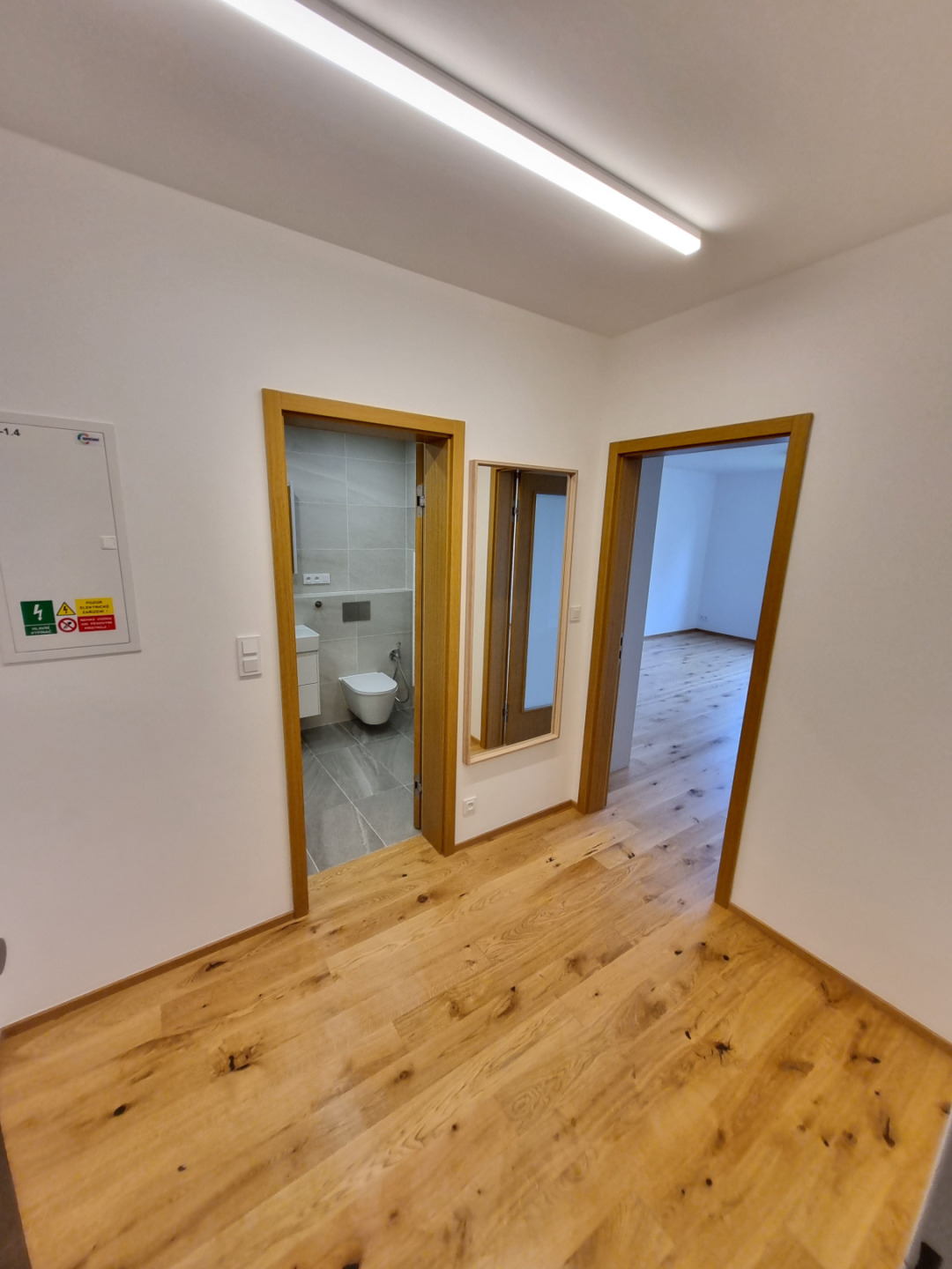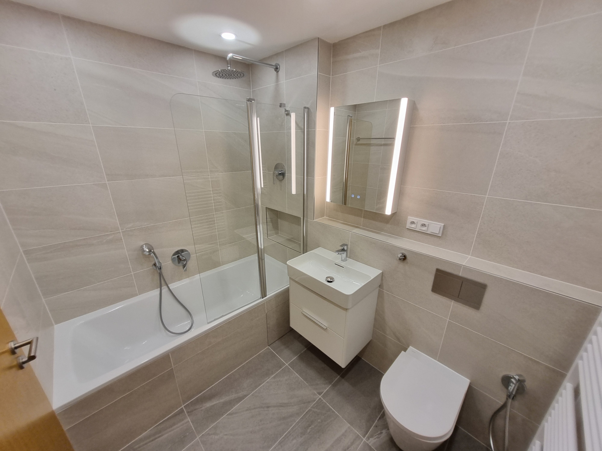 Byt se nabízí zařízený s zcela novou kuchyňskou linkou se spotřebiči WHIRLPOOL (lednice s mrazákem, myčka, mikrovlnná trouba, indukční varná deska a digestoř), moderními designovými LED svítidly v celém bytě. Pro příjemnou atmosféru jsou v ložnici a v obývacím pokoji svítidla stmívatelná. V předsíni je prostorná vestavná skříň s věšákovou stěnou. V koupelně je nainstalována zrcadlová galerie, skříňka pod umyvadlem, háčky, držáky, atp. WC mísa GEBERIT a toaletní sprchou. Koupelna má vanu. Podlahy jsou dřevěné. Veškerá okna jsou vybavena venkovními žaluziemi. Možnost napojení na kabelový internet (datová zásuvka v každém pokoji).