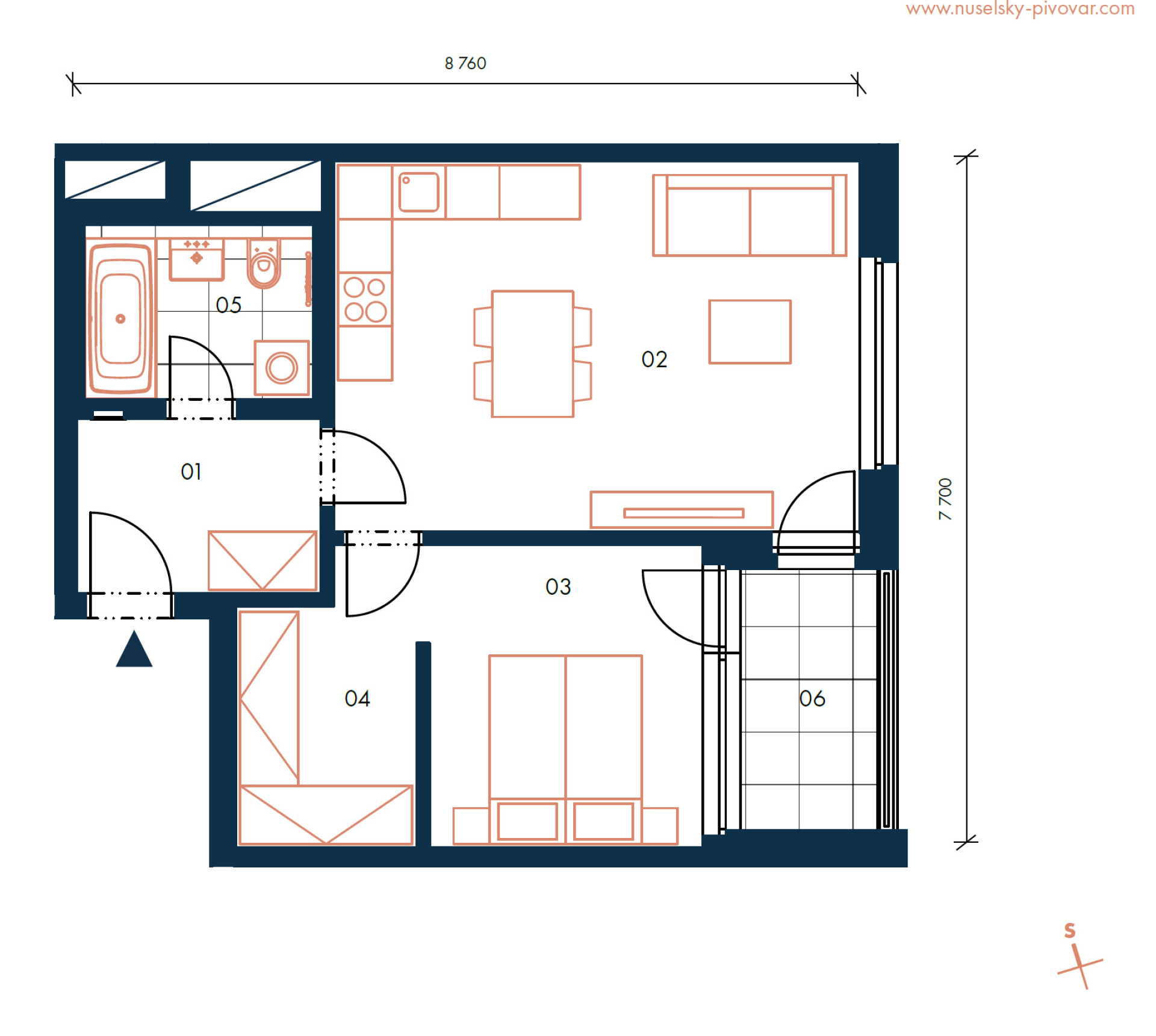 Nabízíme k pronájmu byt 2+kk o rozloze 51,5 m2 + terasa 4,9 m2 v Praze 4 - Nusle, ul. Mužíkova. Byt se nachází ve 2.NP novostavby projektu Nuselský pivovar.