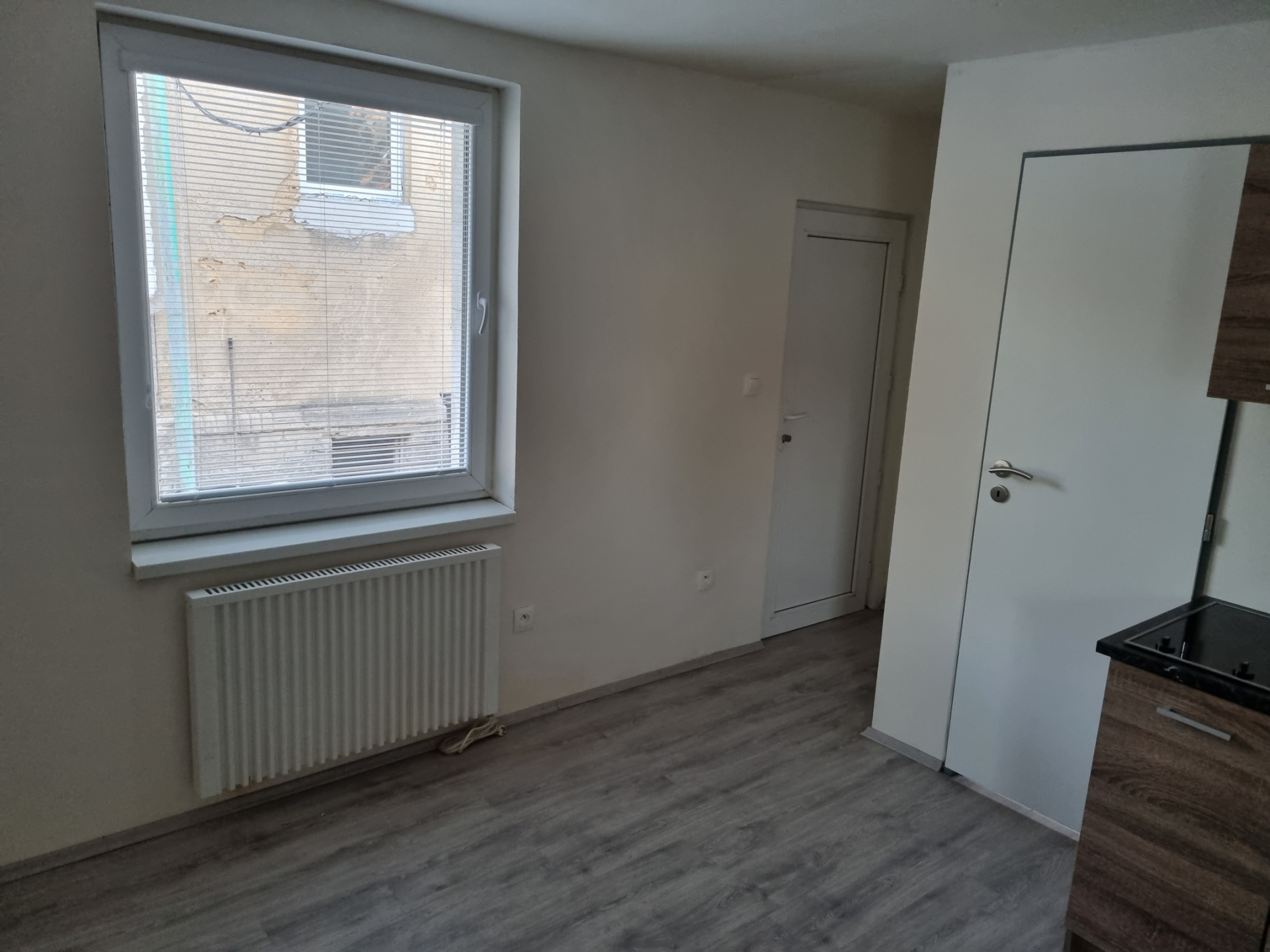 K dispozici kuchyňská linka s varnou deskou, lednice a pračka. Koupelna se sprchovým koutem a wc.